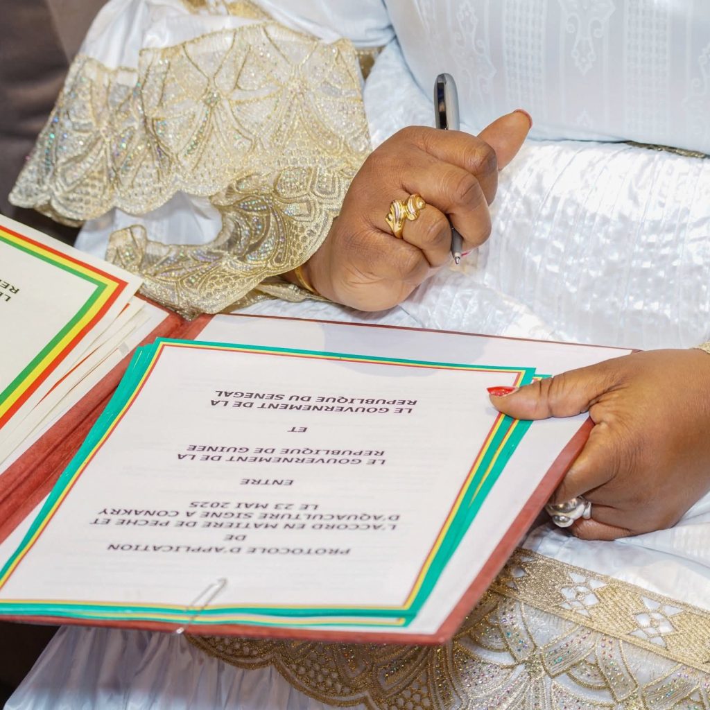 À cette occasion, Madame le Ministre a adressé ses sincères remerciements à son homologue guinéenne, ainsi qu’à l’ensemble des autorités et partenaires qui ont honoré cette rencontre par leur présence. Cet accord marque une étape importante dans la consolidation de la coopération entre les deux pays, en vue d’une gestion durable des ressources halieutiques, du développement de l’aquaculture, et du renforcement des échanges et du savoir-faire technique dans le secteur. Cette signature ouvre la voie à de nouvelles opportunités, à des projets conjoints, et à un partenariat solide fondé sur la solidarité, l’expertise partagée et la vision commune d’un développement bleu durable.