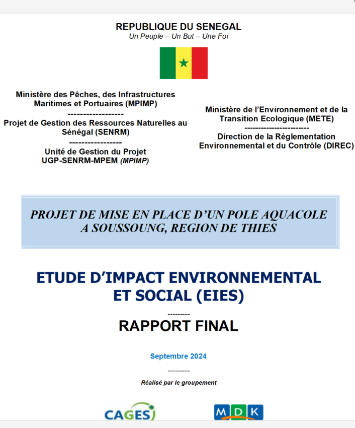 PROJET DE MISE EN PLACE D’UN POLE AQUACOLE A SOUSSOUNG, REGION DE THIES